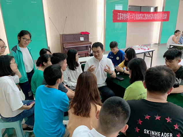 6月20日,江蘇農(nóng)牧科技職業(yè)學(xué)院大學(xué)生活動中心成功舉辦了“大學(xué)生創(chuàng)業(yè)群英匯暨泰州市第49期創(chuàng)業(yè)者沙龍活動”。本次活動由泰州市人力資源和社會保障局、江蘇農(nóng)牧科技職業(yè)學(xué)院、北京正保育才教育科技股份有限公司共同主辦。泰州市人力資源和社會保障局創(chuàng)業(yè)科張靜,上海飛螞蟻環(huán);厥湛偨(jīng)理張煜皓,江蘇山美貿(mào)易有限公司董事長聞錦,蘇州聚品鑫諾科技貿(mào)易有限公司總經(jīng)理張璋,江蘇農(nóng)牧科技職業(yè)學(xué)院副校長朱國奉、招就處處長陸輝、副處長夏鋒、北京正保育才教育科技股份有限公司無錫、泰州分公司總經(jīng)理袁飛以及來自院校28名正在創(chuàng)業(yè)或有創(chuàng)業(yè)想法的同學(xué)一起參加了本次活動;顒右 “創(chuàng)業(yè)成就夢想”為主題,旨在為大家提供一個認(rèn)識創(chuàng)業(yè)、了解創(chuàng)業(yè)、與創(chuàng)業(yè)嘉賓近距離交流、傾聽他們的創(chuàng)業(yè)故事和創(chuàng)業(yè)理念的平臺,為有志于創(chuàng)業(yè)的大學(xué)生提供思路,給大學(xué)生創(chuàng)業(yè)保駕護航。
