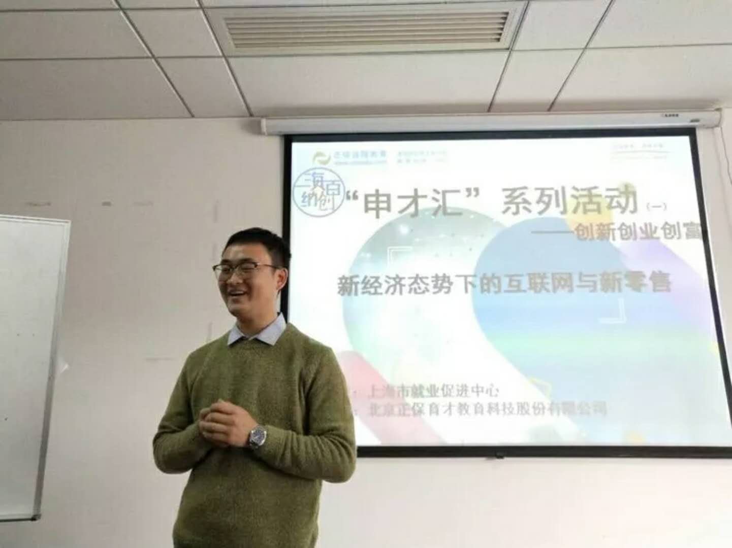 為幫助有創(chuàng)業(yè)意向的學(xué)員更好的順應(yīng)新經(jīng)濟(jì)發(fā)展態(tài)勢(shì),學(xué)做未來(lái)企業(yè)家,2018年3月25日下午,由上海市就業(yè)促進(jìn)會(huì)指導(dǎo),北京正保育才教育科技有限公司主辦的2018“申才匯”創(chuàng)新創(chuàng)業(yè)創(chuàng)富系列活動(dòng)首場(chǎng)報(bào)告會(huì)“新經(jīng)濟(jì)態(tài)勢(shì)下的互聯(lián)網(wǎng)與新零售”在中國(guó)(上海)創(chuàng)業(yè)者公共實(shí)訓(xùn)基地創(chuàng)業(yè)能力實(shí)訓(xùn)平臺(tái)舉行,共有45名有創(chuàng)業(yè)意愿的學(xué)員和社會(huì)人士參加。