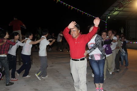 篝火晚會現(xiàn)場朱總(紅衣)帶領(lǐng)正保人盡情舞蹈慶上市 正保育才教育攝