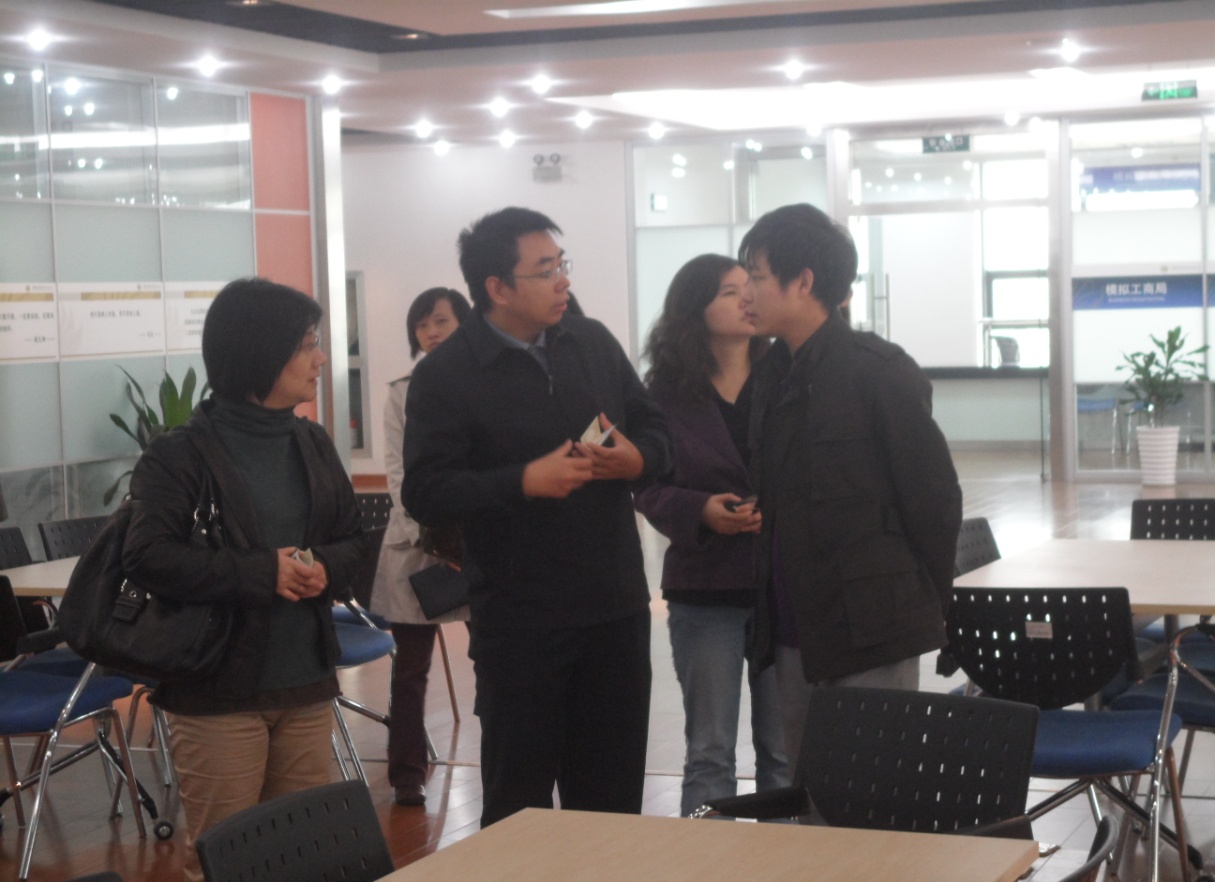 2010年11月12日上午10點(diǎn)30分,上海市楊浦區(qū)人力資源和社會(huì)保障局楊局長(zhǎng)、大學(xué)生就業(yè)服務(wù)中心查主任、大學(xué)生就業(yè)服務(wù)中心發(fā)展規(guī)劃部負(fù)責(zé)人張冠榮、大學(xué)生就業(yè)服務(wù)中心外聯(lián)協(xié)作部負(fù)責(zé)人湯聰穎,四人一行至全球模擬公司聯(lián)合體中國中心無錫市創(chuàng)業(yè)實(shí)訓(xùn)中心(簡(jiǎn)稱無錫中心)進(jìn)行參觀考察。