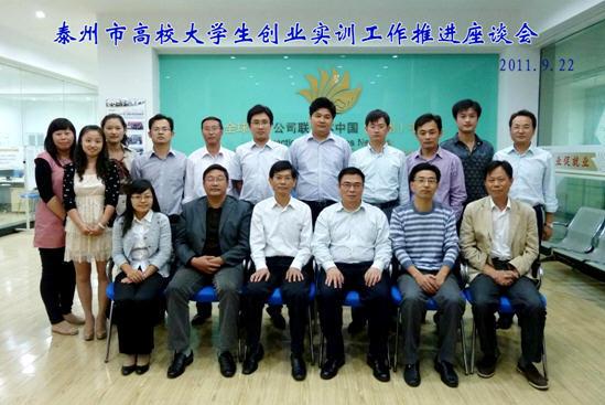2011年9月22日下午,泰州市人力資源和社會保障局和全球模擬公司聯(lián)合體中國(泰州)中心共同舉辦了泰州高校大學(xué)生創(chuàng)業(yè)實(shí)訓(xùn)工作推進(jìn)座談會。泰州市人力資源和社會保障局就業(yè)管理中心張主任、趙科長,中國就業(yè)促進(jìn)會創(chuàng)業(yè)專業(yè)委員會副主任、全球模擬公司聯(lián)合體中國中心副主任彭樂群,全球模擬公司聯(lián)合體中國(泰州)中心陸潮煒以及來自泰州市9個學(xué)校的領(lǐng)導(dǎo)共同出席了此次座談會。