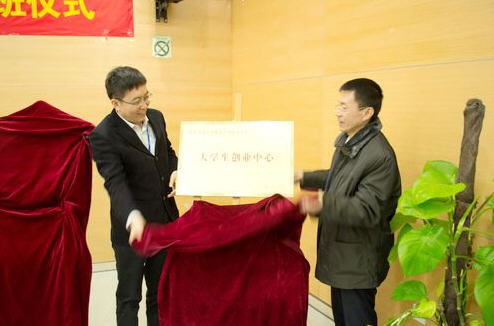 蘇州市大中專畢業(yè)生就業(yè)指導(dǎo)中心主任劉衛(wèi)國和院長(zhǎng)楊冬一起為創(chuàng)業(yè)中心揭牌。洪偉芳主任和趙強(qiáng)處長(zhǎng)為蘇州市人力資源和社會(huì)保障局與學(xué)院共建的"高校就業(yè)創(chuàng)業(yè)指導(dǎo)站"揭牌。洪偉芳主任還為在場(chǎng)的學(xué)員做了一場(chǎng)精彩的開班動(dòng)員演講,他介紹了創(chuàng)業(yè)模擬實(shí)訓(xùn)的概況、蘇州市創(chuàng)業(yè)相關(guān)政策以及相關(guān)培訓(xùn)要求等。