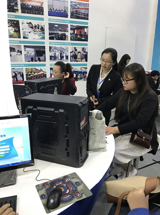 整個(gè)展會(huì)分為五大功能區(qū),分別從項(xiàng)目展示區(qū)、微課播放區(qū)、測評體驗(yàn)區(qū)、商戰(zhàn)對抗區(qū)、實(shí)訓(xùn)教學(xué)區(qū)(由專人負(fù)責(zé)指導(dǎo)與講解)進(jìn)行展示。