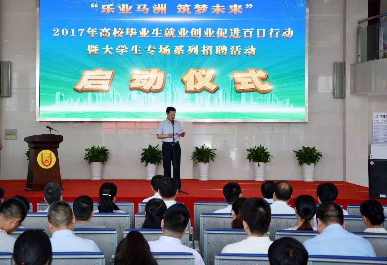 2017年6月11日,靖江市“樂業(yè)馬洲,筑夢(mèng)未來”2017年高校畢業(yè)生就業(yè)創(chuàng)業(yè)促進(jìn)百日行動(dòng)暨大學(xué)生專場(chǎng)系列招聘活動(dòng)在市人社局人力資源服務(wù)中心正式啟動(dòng)。市委常委、常務(wù)副市長(zhǎng)沈南松出席活動(dòng)并致辭。市人社局黨委書記、局長(zhǎng)范新宏主持了啟動(dòng)儀式。