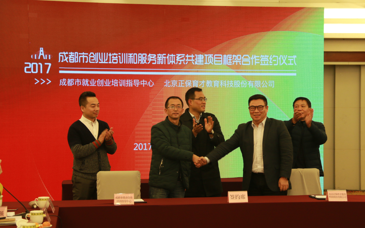 大會最后,為構建成都市創(chuàng)業(yè)培訓和服務新體系,借鑒國內外先進經驗,突出成都市區(qū)位特色,正保育才公司與成都市就業(yè)創(chuàng)業(yè)培訓指導中心簽署了框架合作協(xié)議。雙方將在“總體規(guī)劃,分步實施;先易后難,循序漸進;平等互惠,共建共享;優(yōu)勢互補,合作共贏”的原則下,就共建創(chuàng)業(yè)服務云平臺、創(chuàng)業(yè)引領服務示范基地等方面展開深度合作。