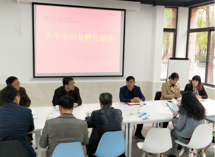顧局長一行在無錫機(jī)電莫校長帶領(lǐng)下逐一考察了實訓(xùn)中心創(chuàng)業(yè)工作區(qū)、教學(xué)區(qū)、創(chuàng)客功能區(qū)、成果展示區(qū)。莫校長、費主任分別介紹了無錫機(jī)電學(xué)校概況、專業(yè)情況、學(xué)校特色以及實訓(xùn)中心的建設(shè)理念和發(fā)展方向,重點強(qiáng)調(diào)了創(chuàng)業(yè)團(tuán)隊的孵化與扶持,希望能夠在政府及企業(yè)的支持下更好的服務(wù)于創(chuàng)業(yè)團(tuán)隊;正保育才無錫中心袁總結(jié)合現(xiàn)有的企業(yè)資源,就課程共建、項目引入、服務(wù)體系等方面介紹了與無錫機(jī)電共建實訓(xùn)中心的具體實施內(nèi)容,旨在加強(qiáng)實訓(xùn)實踐,引進(jìn)企業(yè)進(jìn)行成果轉(zhuǎn)化,定期開展創(chuàng)業(yè)沙龍、講座、項目路演活動,更好地服務(wù)于創(chuàng)業(yè)者。