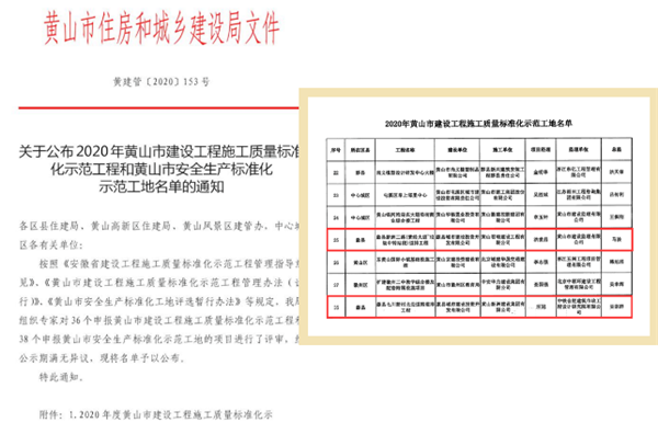 黃山市建設(shè)工程施工質(zhì)量標準化示范工程