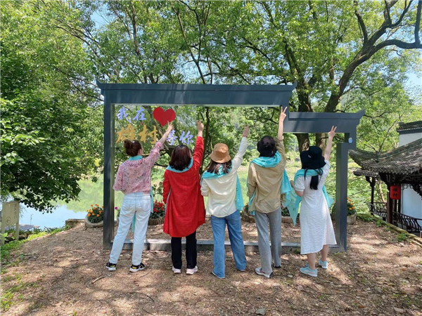 媽媽們在景區(qū)拍照打卡