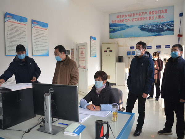 2月4日下午,副縣長(zhǎng)汪洪濤、住建局局長(zhǎng)黃中到自來(lái)水公司督查疫情防控期間供水安全工作。
