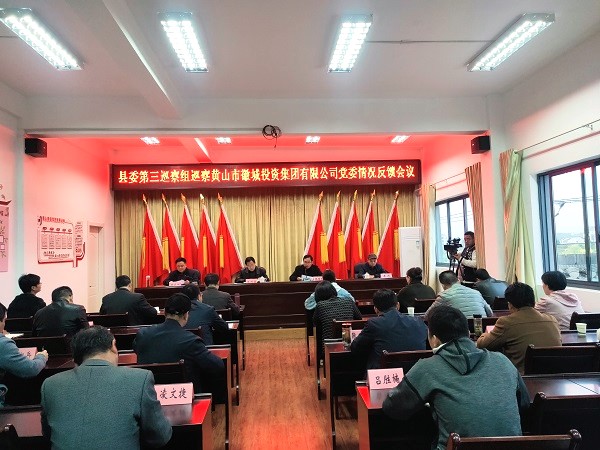 根據(jù)縣委的統(tǒng)一部署,2020年3月24日下午,縣委第三巡察組向徽投集團(tuán)黨委反饋巡察情況??h人民政府副縣長汪洪濤出席會議并講話,縣委第三巡察組組長張國忠代表巡察組反饋巡察情況,集團(tuán)黨委書記、董事長洪筱明主持會議并作表態(tài)發(fā)言。