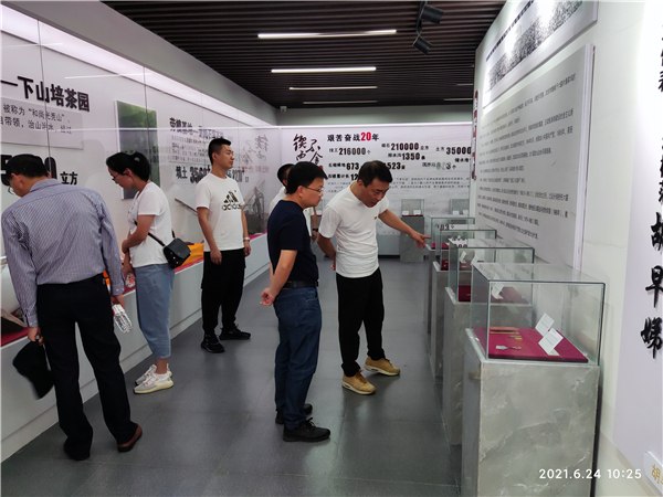 會(huì)后,大家參觀了六聯(lián)村胡早娣勞模紀(jì)念館,深入學(xué)習(xí)了勞模精神。胡早娣是社會(huì)主義建設(shè)初期涌現(xiàn)出的巾幗勞模,她團(tuán)結(jié)多名年輕婦女,組建了一支鐵姑娘專(zhuān)業(yè)隊(duì)治山治水,使荒山禿嶺變成了層層梯磅茶園。1957年胡早娣代表六聯(lián)茶業(yè)社進(jìn)京參加表彰大會(huì),捧回了周恩來(lái)總理親筆題詞“發(fā)展山區(qū)經(jīng)濟(jì),搞好水土保持”的錦旗,時(shí)至今日,六聯(lián)精神和胡早娣的名字仍在江淮大地廣為傳頌。