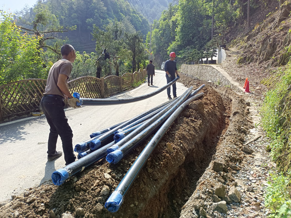 大梅口、賣花漁村農(nóng)飲建設(shè)是自來水公司2022年攻堅(jiān)作戰(zhàn)重點(diǎn)項(xiàng)目——新安江右岸區(qū)域農(nóng)飲工程的一個(gè)重要組成部分。為保障大梅口村民茶季和賣花漁村鄉(xiāng)村旅游的交通安全,公司相關(guān)部門提前謀劃,細(xì)化施工組織方案。施工過程中,安裝人員與土建隊(duì)伍多次在施工現(xiàn)場展開探討,合理選擇機(jī)械開挖路段、開挖時(shí)間,他們密切配合、齊頭并進(jìn),按要求設(shè)置施工警示標(biāo)志、防護(hù)圍欄,并采取特殊的管道安裝方式“裝一根埋一根”,確保村民出行安全。