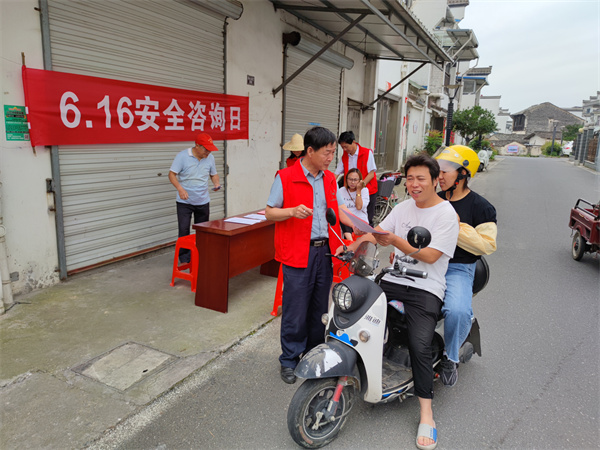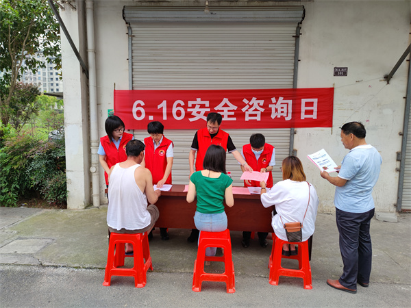 一大早,大家穿起紅馬甲,準(zhǔn)時來到古溪安置區(qū),在小區(qū)的主入口,拉起“6.16安全咨詢?nèi)铡睓M幅,抬出小桌子,擺上各類安全知識宣傳資料?;顒泳o緊圍繞“遵守安全生產(chǎn)法 當(dāng)好第一責(zé)任人”的主題,對來來往往的小區(qū)居民發(fā)放宣傳冊,還上門入戶發(fā)放防汛、防火、防詐騙等一封信和現(xiàn)場接受居民的安全知識咨詢,現(xiàn)場為小區(qū)居民耐心講解關(guān)于安全防汛、防災(zāi)減災(zāi)、消防安全、防電信網(wǎng)絡(luò)詐騙、安全生產(chǎn)十五條措施等安全防范知識,整個活動共計發(fā)放宣傳手冊300余份。