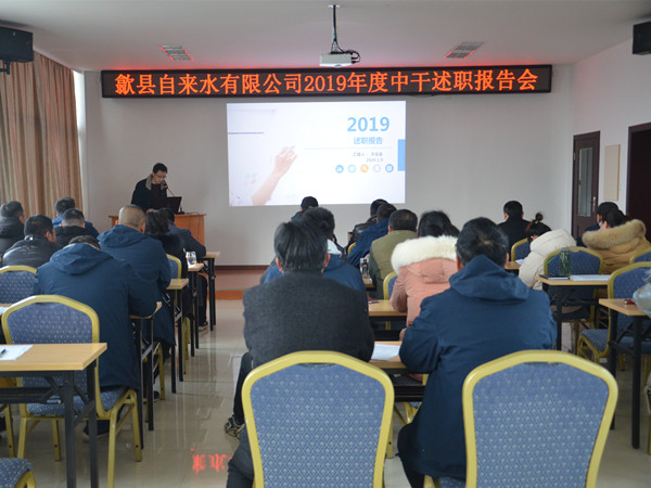 2020年1月9日上午,自來水公司召開了2019年度中干述職報告會。公司領(lǐng)導(dǎo)層、各部門負(fù)責(zé)人及職工代表參加了此次會議。