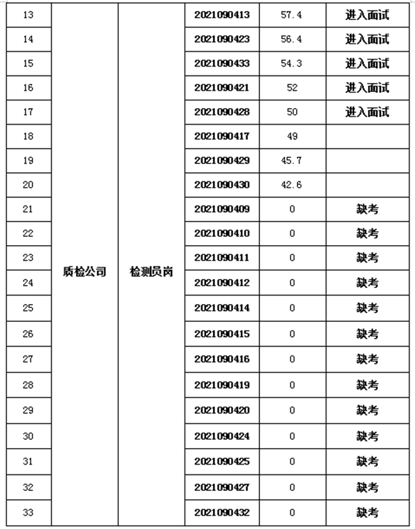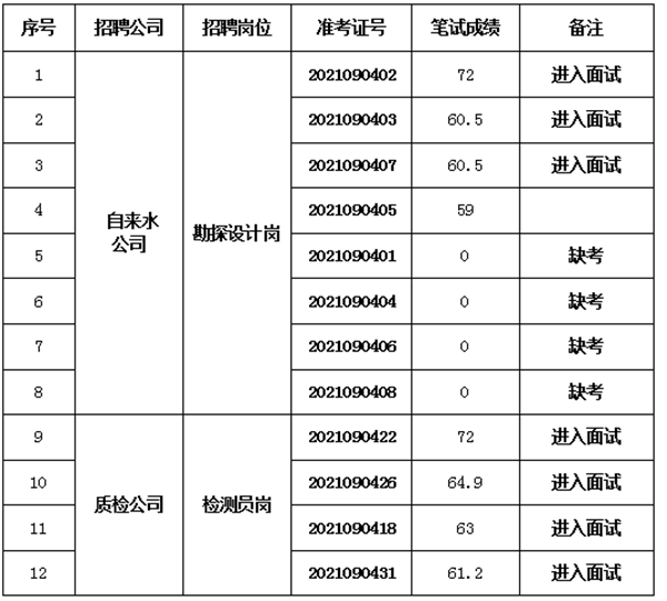 根據(jù)《黃山徽投集團(tuán)招聘員工考試公告》,筆試工作已于2021年9月4日上午結(jié)束,現(xiàn)將筆試成績及進(jìn)入面試人員名單公布如下: