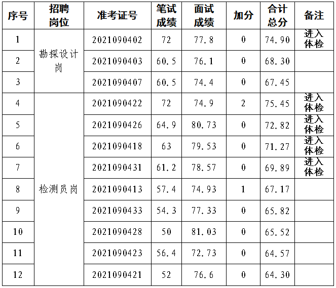 根據(jù)《黃山徽投集團(tuán)招聘員工考試公告》,面試工作已于2021年9月4日結(jié)束,現(xiàn)將考生的面試成績及最終綜合成績予以公告: