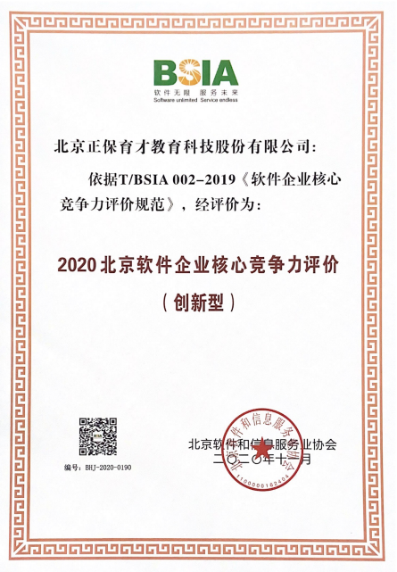 正保育才有幸入選“2020北京軟件企業(yè)核心競爭力評價(創(chuàng)新型)”榜單。