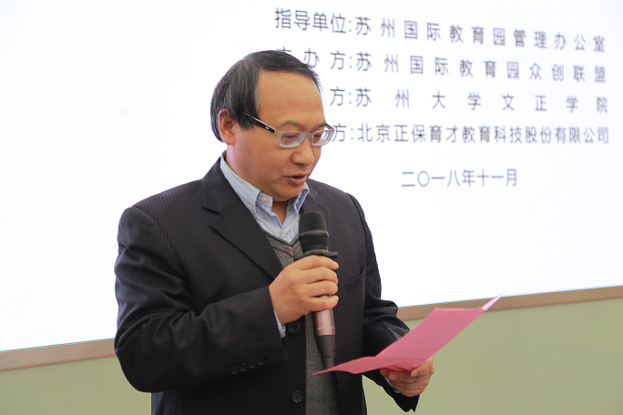 上午,成長(zhǎng)訓(xùn)練營(yíng)開(kāi)幕式在蘇州大學(xué)文正學(xué)院3-101報(bào)告廳舉辦。蘇州國(guó)際教育園管理辦公室國(guó)際合作與教育培訓(xùn)處處長(zhǎng)倪忠平、蘇州大學(xué)文正學(xué)院黨委書(shū)記仲宏、蘇州大學(xué)黨委副書(shū)記、副院長(zhǎng)袁昌兵以及生涯和人才管理領(lǐng)域?qū)<摇⑿睦韺W(xué)博士布萊恩先生(Dr.Brian)出席本次開(kāi)幕式。