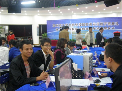 在模擬實訓(xùn)結(jié)業(yè)儀式上,蘇州市職業(yè)培訓(xùn)指導(dǎo)中心錢平原主任表示通過本次示范班的舉辦,為創(chuàng)業(yè)模擬實訓(xùn)工作在蘇州市的啟動和開展提供了一個很好的推動作用,并希望以此為開端,在整個蘇州市大力開展以針對有創(chuàng)業(yè)意愿的大學(xué)生為主要群體的創(chuàng)業(yè)模擬實訓(xùn)工作,進(jìn)一步促進(jìn)大學(xué)生創(chuàng)業(yè)實訓(xùn)項目的順利實施與開展。