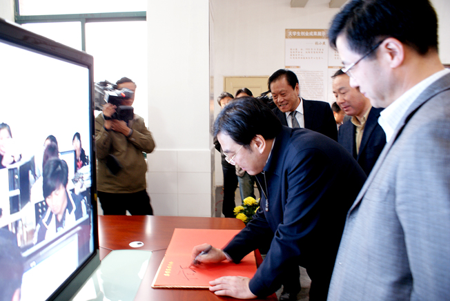 信長(zhǎng)星一行興致勃勃地來(lái)到學(xué)院大學(xué)生創(chuàng)業(yè)模擬實(shí)訓(xùn)中心,與正在這里參加模擬創(chuàng)業(yè)的學(xué)生進(jìn)行親切的交談,詢(xún)問(wèn)他們的學(xué)習(xí)情況。項(xiàng)目負(fù)責(zé)人薄賦徭副教授詳細(xì)介紹了創(chuàng)業(yè)實(shí)訓(xùn)的特點(diǎn)、目標(biāo)及實(shí)施情況,創(chuàng)業(yè)實(shí)訓(xùn)深受全院學(xué)生歡迎,一開(kāi)班就有大一、大二、大三共計(jì)300多名學(xué)生報(bào)名。實(shí)訓(xùn)中心按照年級(jí)編班,將同一年級(jí)、不同專(zhuān)業(yè)學(xué)生編在一個(gè)培訓(xùn)班,30人為一班,既考慮到了學(xué)生基礎(chǔ)相近,以便因材施教;又考慮到不同專(zhuān)業(yè)可互補(bǔ),有利于保證培訓(xùn)效果。
