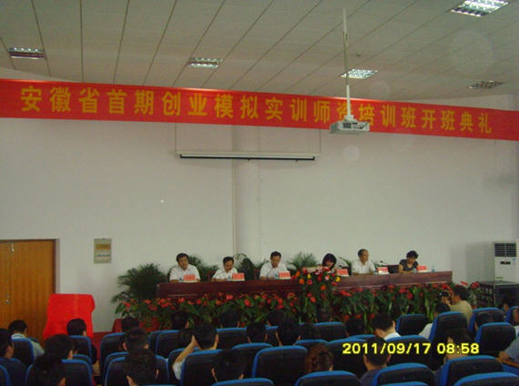 為了全面推動(dòng)安徽省大學(xué)生創(chuàng)業(yè)工作,建立本土師資隊(duì)伍,推動(dòng)安徽省創(chuàng)業(yè)實(shí)訓(xùn)模擬公司項(xiàng)目向更高水平發(fā)展,9月17日上午,安徽省首屆創(chuàng)業(yè)模擬實(shí)訓(xùn)師資培訓(xùn)班開班儀式在馬鞍山職業(yè)技術(shù)學(xué)院圖書館報(bào)告廳隆重舉行。本次培訓(xùn)是由安徽省人力資源和社會(huì)保障部主辦,來自全省高校和各地市人社局就業(yè)服務(wù)機(jī)構(gòu)近80名學(xué)員參加此次培訓(xùn)。