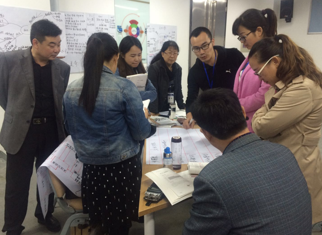 授課過程中,顏紅寶老師和李杰群老師以專業(yè),嚴(yán)密,新穎的教學(xué)方法,系統(tǒng)地講解了新的8M/8O課程內(nèi)容,為學(xué)員們打開了全新的創(chuàng)業(yè)教育思路。“行為導(dǎo)向教學(xué)”標(biāo)準(zhǔn)化后,使得整個課程的靈活度增強而又更具魅力,同時也激起了學(xué)員們的學(xué)習(xí)興趣。整個課程采用“翻轉(zhuǎn)課堂”的教學(xué)模式,學(xué)員們能在“做中學(xué),學(xué)中做”,打破了常規(guī)教學(xué)思路,并且讓學(xué)員充分參與到每個環(huán)節(jié)的討論和競演,不同的認(rèn)知和不同的觀念讓人耳目一新,深受啟發(fā)。每個階段都有小游戲穿插其中,學(xué)習(xí)由枯燥變得生動。七天的培訓(xùn)過程中,學(xué)員們在顏老師的帶領(lǐng)和指導(dǎo)下,充分展現(xiàn)了學(xué)習(xí)的熱情和興趣。即使課后的任務(wù)艱巨,學(xué)員們依舊加班加點有質(zhì)有量的完成。通過這次師資提高班,學(xué)員們對創(chuàng)業(yè)培訓(xùn)的教學(xué)方式,以及組織教學(xué)的思維模式都有了新的認(rèn)識和新的突破。