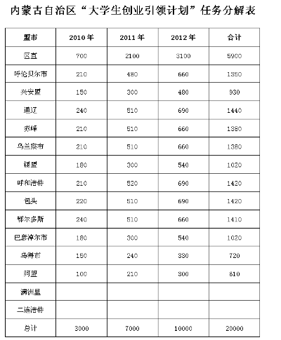 附件:內蒙古“大學生創(chuàng)業(yè)引領計劃”工作任務分解表。